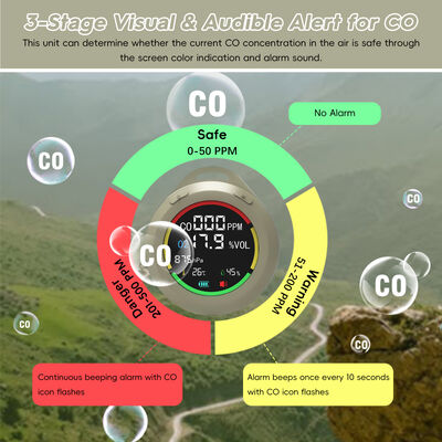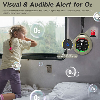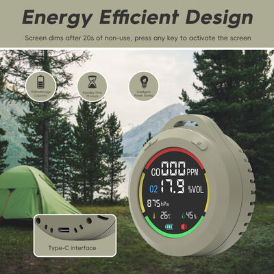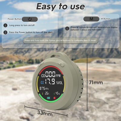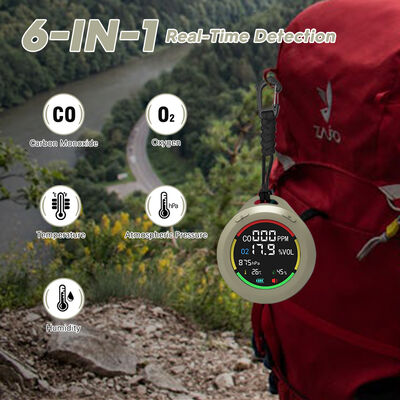 [6-in-1 en draagbaar ontwerp] RV koolmonoxide detector detecteert CO, O2, atmosferische druk, hoogte, temperatuur, vochtigheid in real time.kan gemakkelijk in de zak worden gezetHet heeft ook een 7,8 inch lanyard, kan opgehangen en staan.