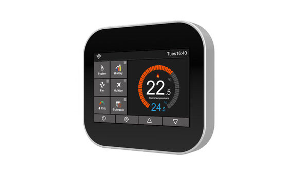 * 24Vac, 230Vac stroomvoorziening * 3,5V TFT kleuren touchscreen * Omgevingslicht sensor * Vochtigheids sensor * LoraWAN, 868/ 915mHZ * Wi-Fi aansluiting (2.4g,Optie) * Tuya-platform WiFi (optie) * Op maat gemaakte MQTT via WiFi (optie) * Modbus485 RTU, TCP (optioneel) * BACnet MSTP, IP (optioneel) * 3 snelheid of 0-10VAC ventilatorcontrole * On/Off relais of 0-10VAC klepcontrole